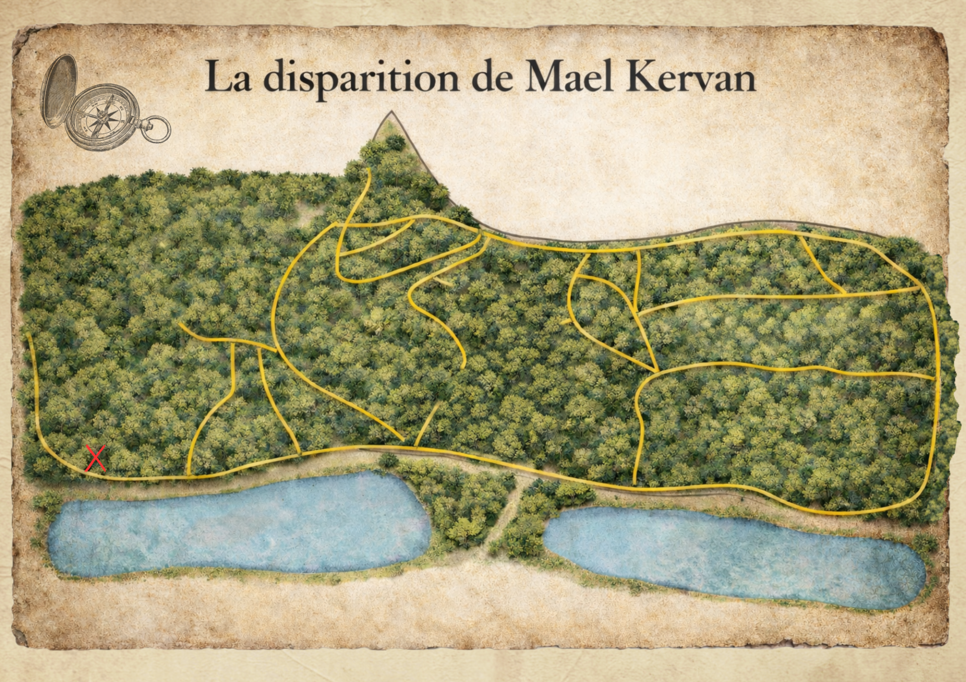 Les arbres cachent des secrets, les sentiers mènent à des énigmes, et deviennent les pièces d’un immense mystère à résoudre.